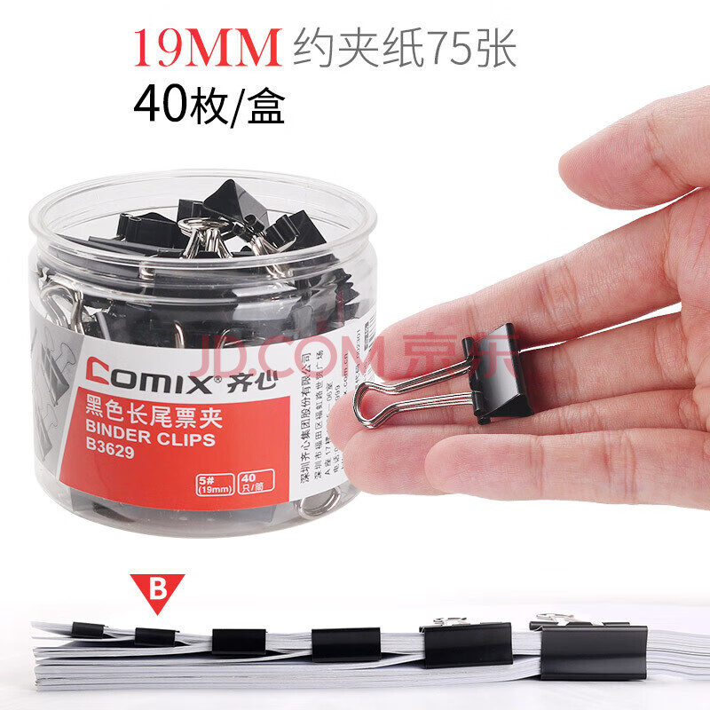 商品相册:齐心(COMIX) 黑色易分类长尾夹/长尾票夹 黑色长尾夹 筒装 黑色19mm-40只 B3629第
