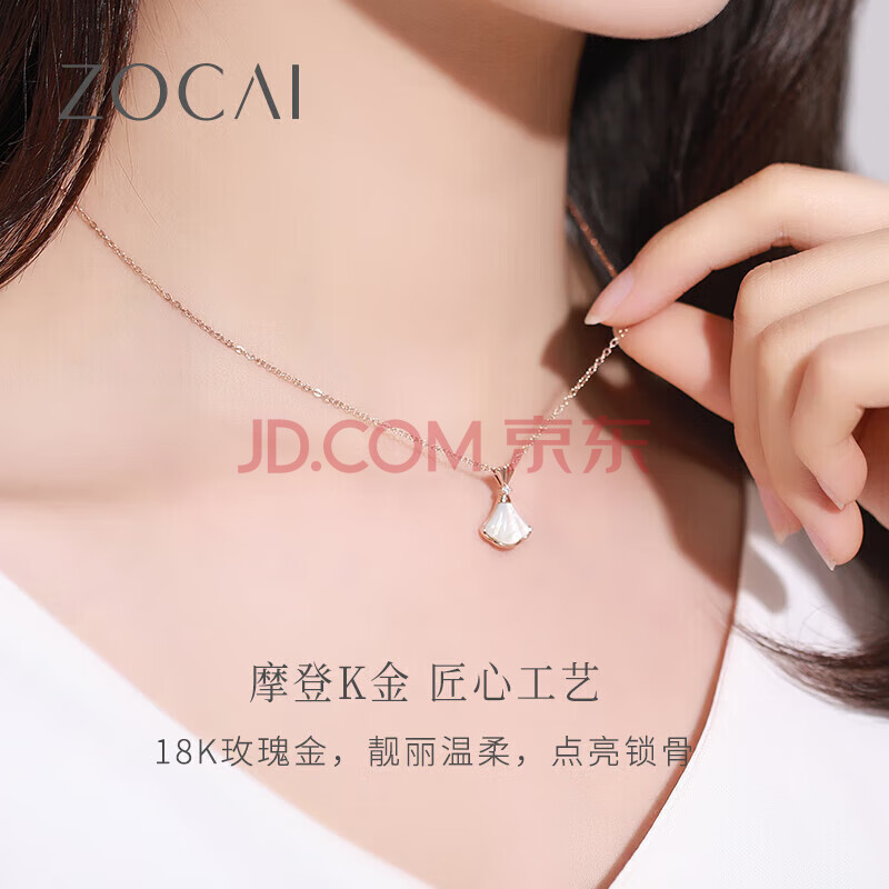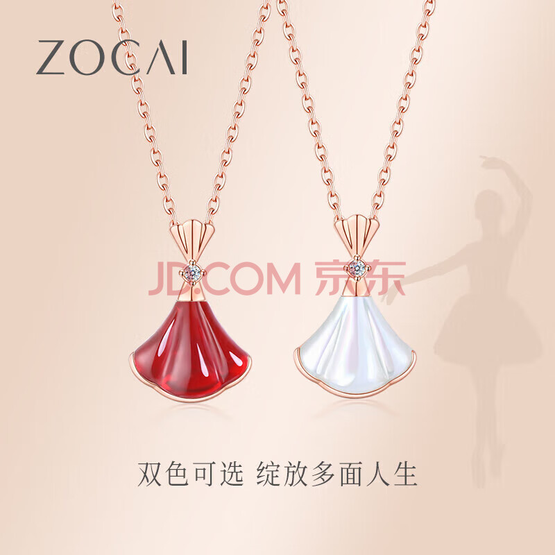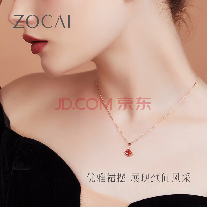 商品相册:佐卡伊钻石吊坠玫瑰18K金红玛瑙扇形小裙子项链生日礼物 D07031第