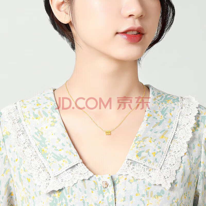 商品相册:梦金园18K金项链AU750小蛮腰套链彩金车花锁骨链女款生日礼物第