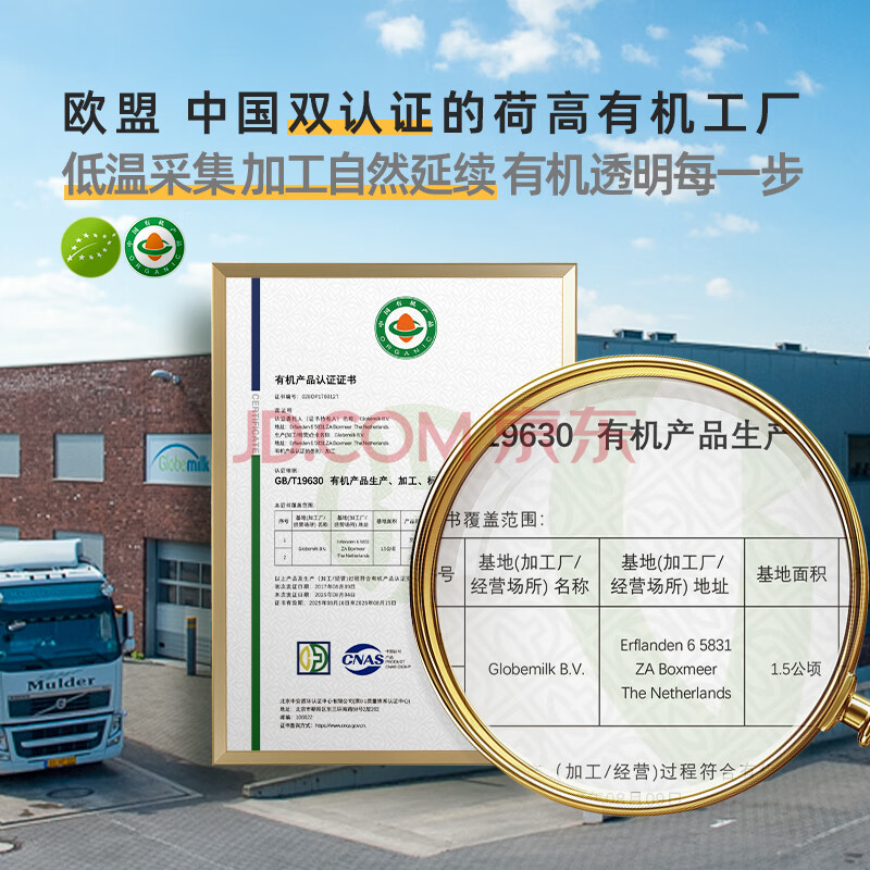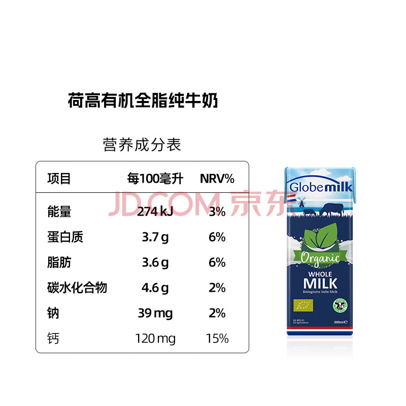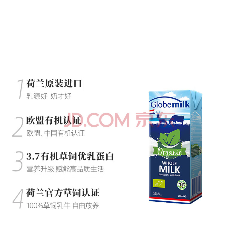 商品相册:荷高(Globemilk)有机草饲全脂纯牛奶200ml*24 荷兰原装进口第1张/共8