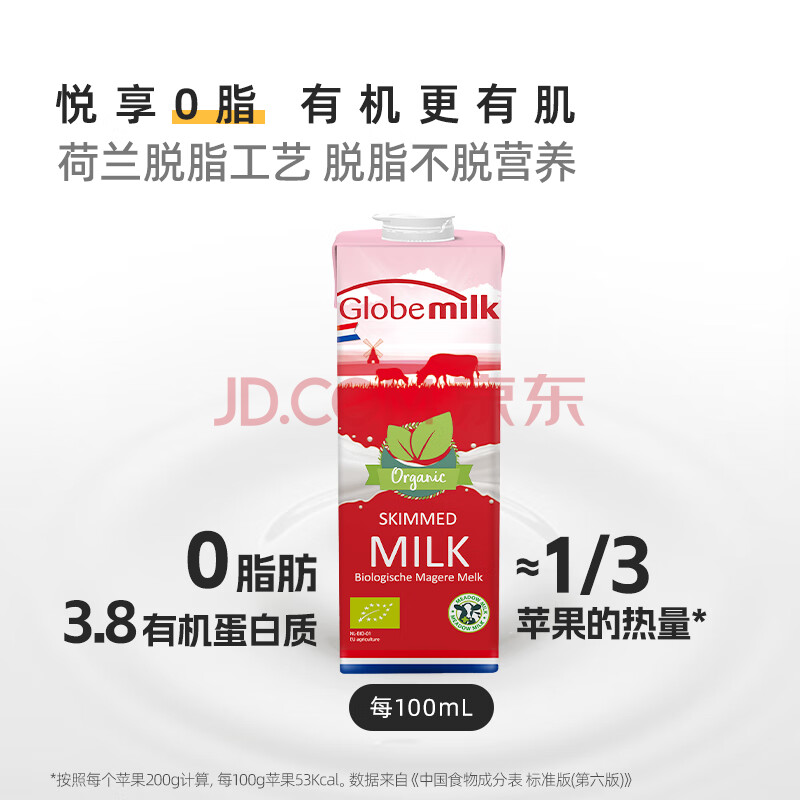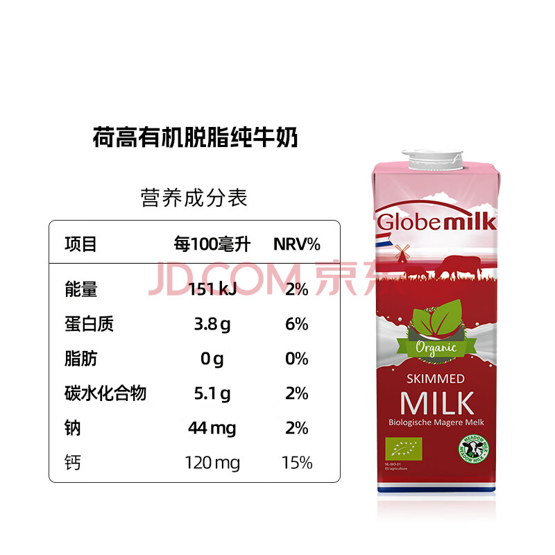 商品相册:荷高(Globemilk)有机草饲脱脂纯牛奶1L*6 荷兰原装进口 高钙0脂第