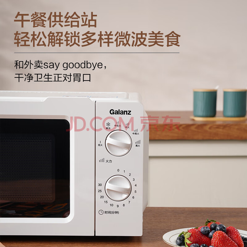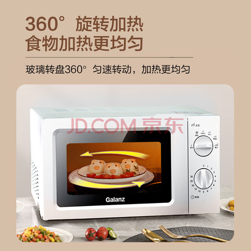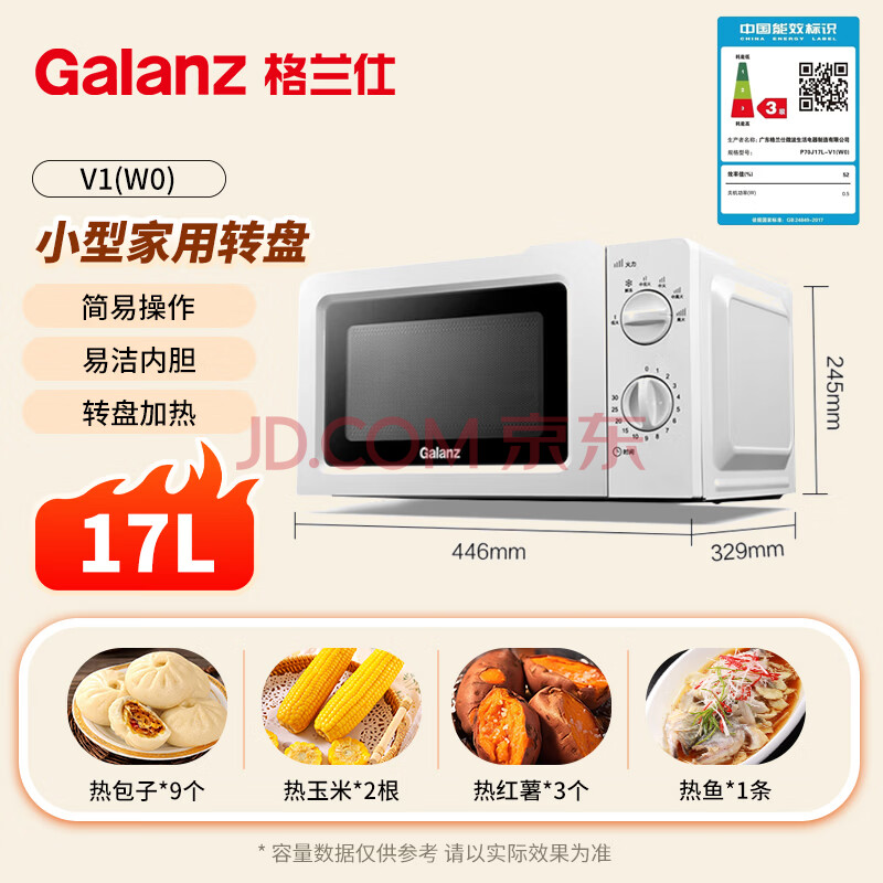 商品相册:格兰仕(Galanz)微波炉家用小型360°转盘快捷加热旋钮操控17L家用容量易洁内胆操作便捷微波炉 V1第