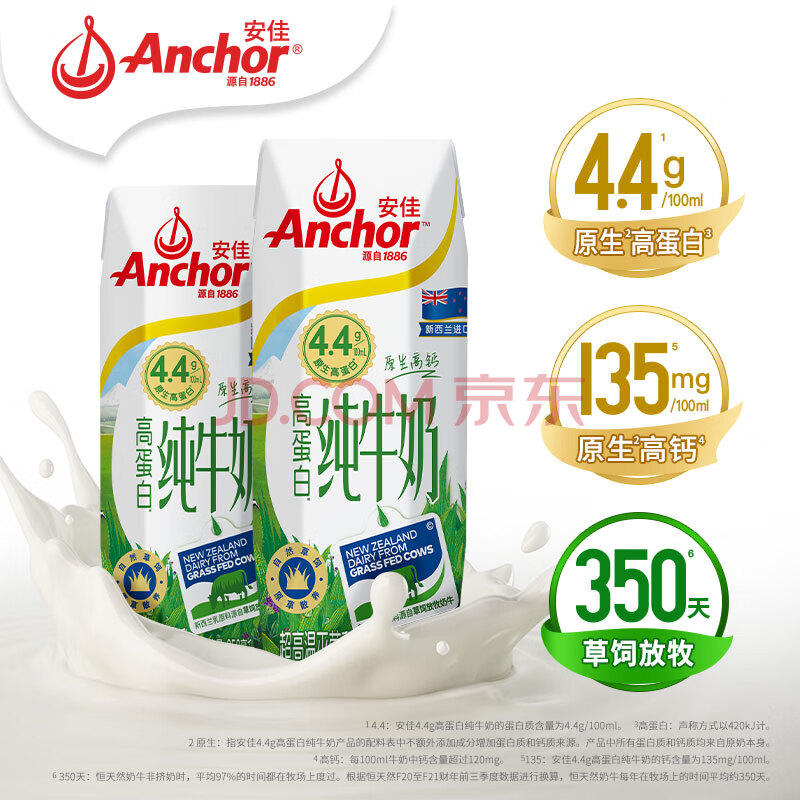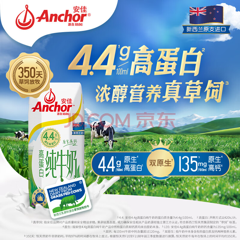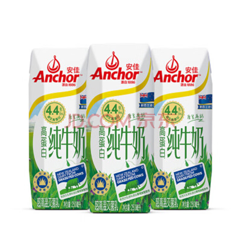 商品相册:安佳(Anchor)4.4g高蛋白高钙纯牛奶 250ml*3盒 尝鲜装 新西兰原支进口草饲牛奶第