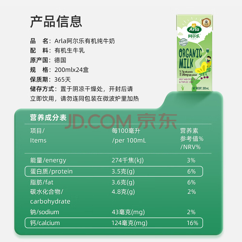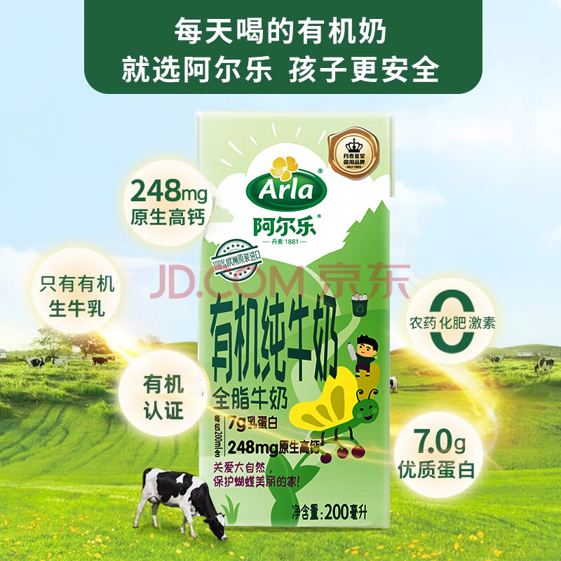 商品相册:阿尔乐德国进口3重有机认证专注儿童有机纯牛奶200ml*24高钙早餐奶第