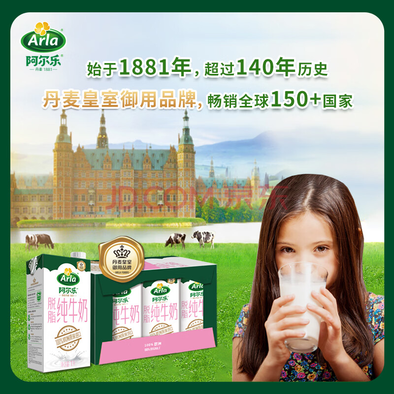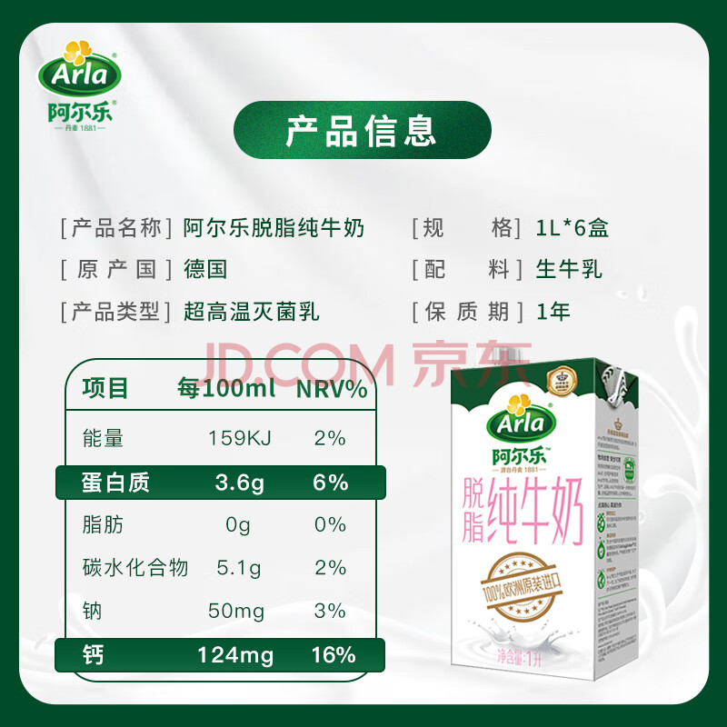 商品相册:阿尔乐德国原装进口脱脂纯牛奶 3.6g蛋白 1L*6盒 早餐奶礼盒整箱装第