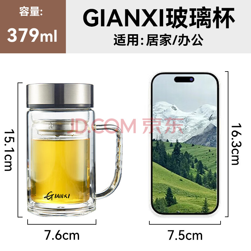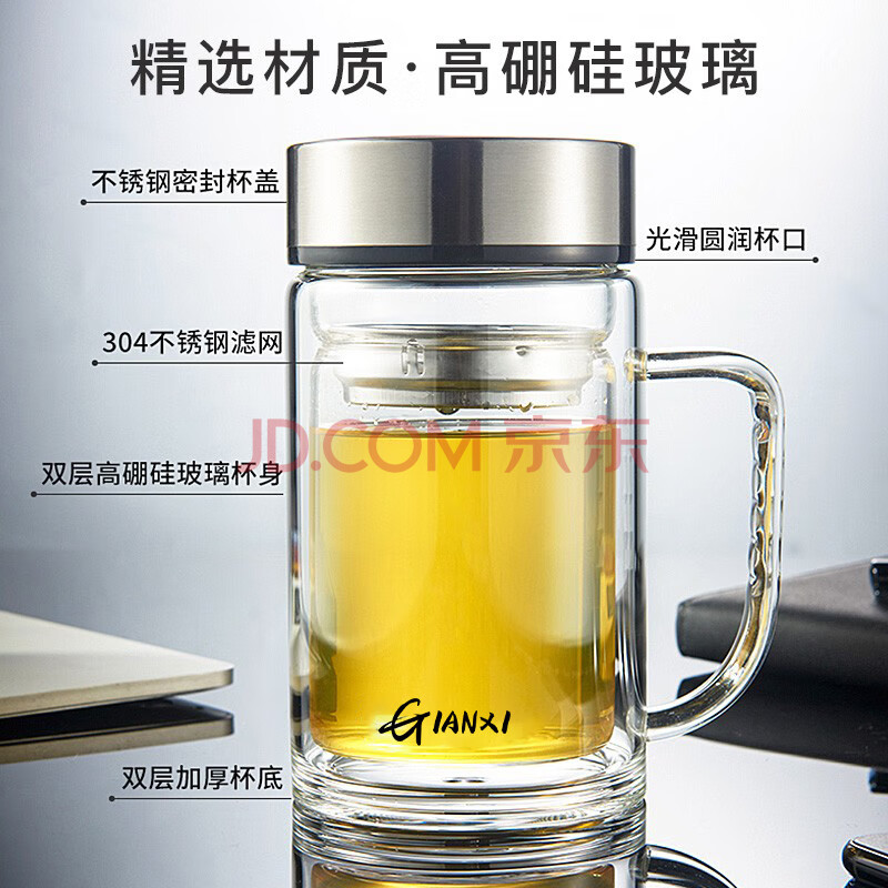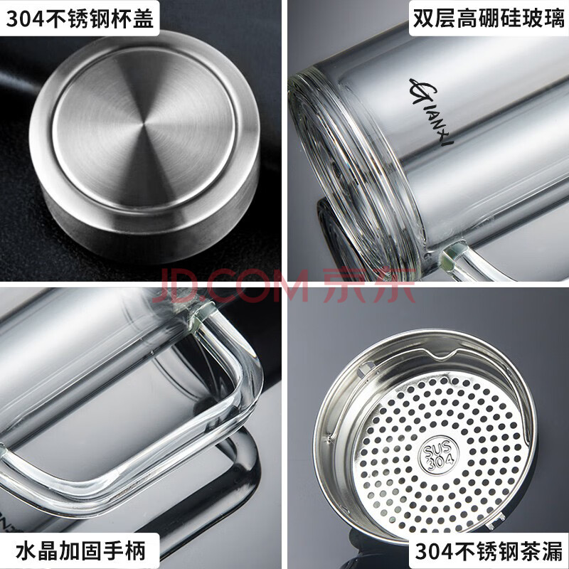 商品相册:捷安玺玻璃杯双层高硼硅夏季带把手杯耐高温泡茶杯水杯子礼物第