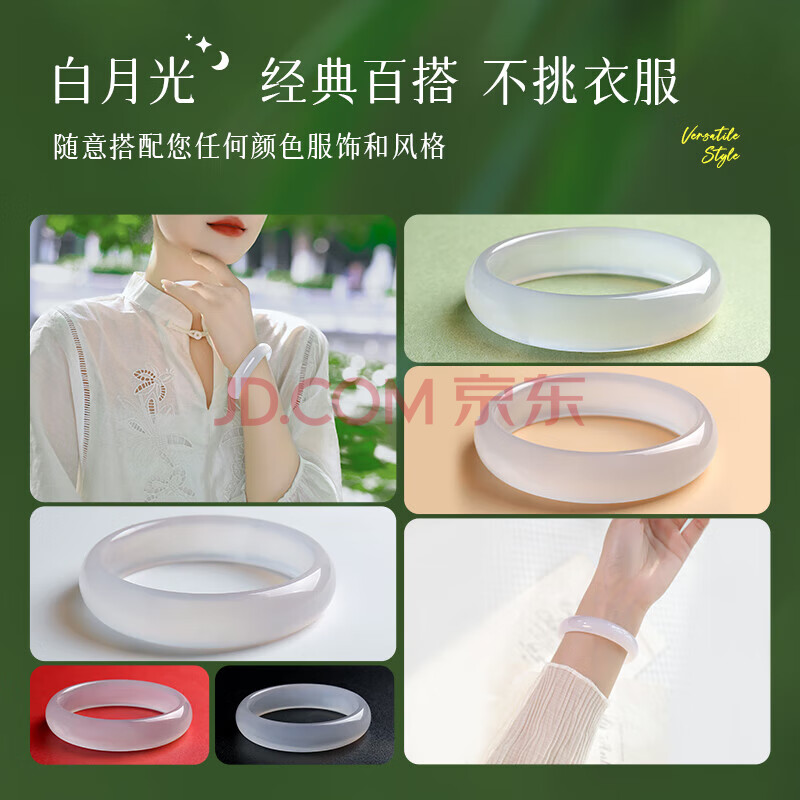 商品相册:辰石白月光玉髓手镯 新中式国风天然高冰玛瑙荔枝冻玉镯子第