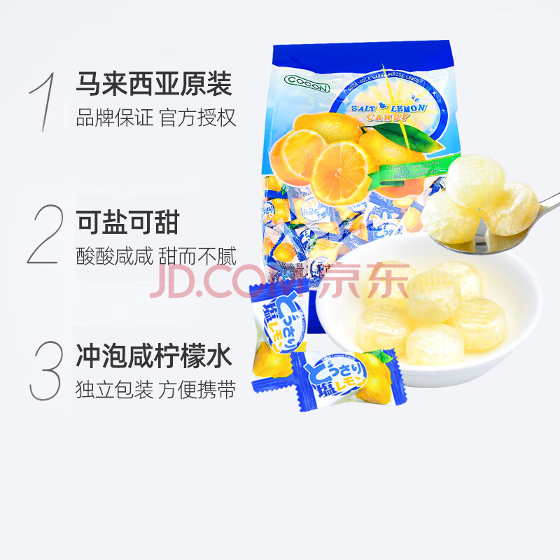 商品相册:可康(cocon)海盐咸柠檬味水果硬糖 约238颗1kg 进口儿童运动休闲出游零食喜糖第