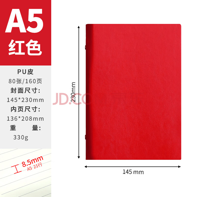 商品相册:嘉然恒 活页本A5商务办公笔记本子高颜值简约加厚不咯手活页记事本可替换活页纸内芯会议记录本可定制 红色第