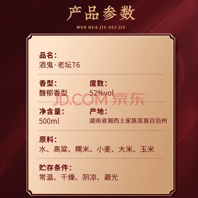 商品相册:酒鬼 老坛T6 馥郁香型白酒 52度 500ml 单瓶装第