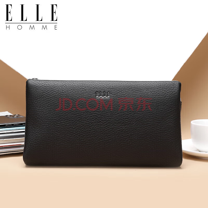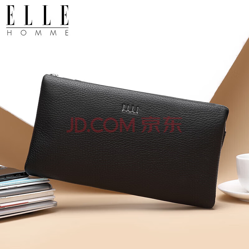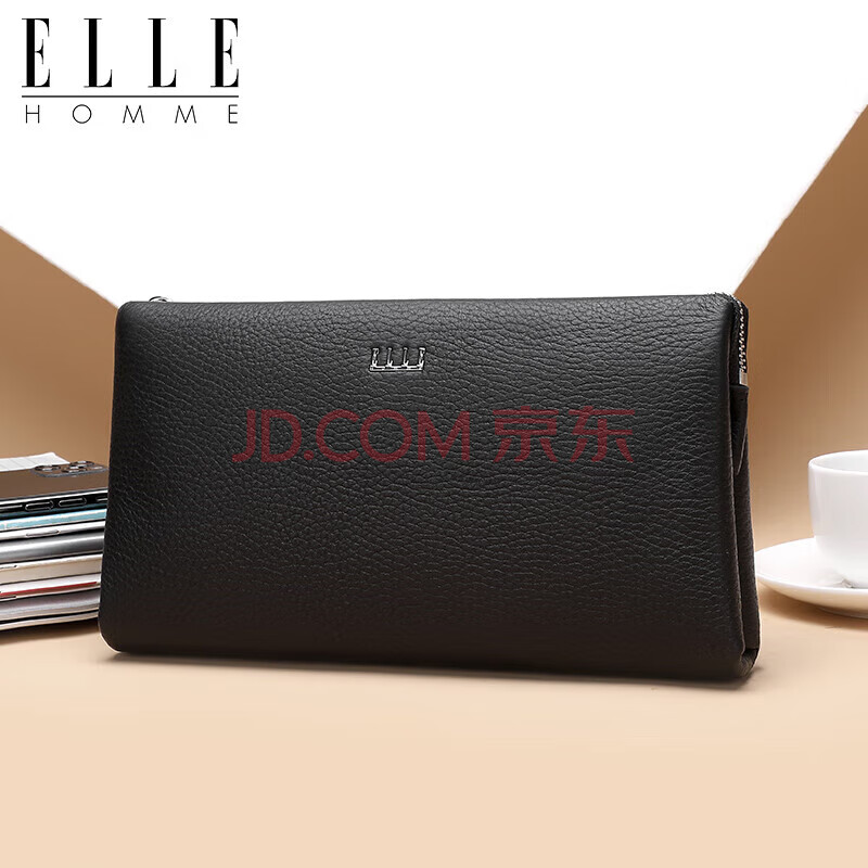 商品相册:ELLE HOMME男士手包 头层鹿皮拉链钱包大容量手拿包时尚男包EB282300450黑色 生日礼物送男友第