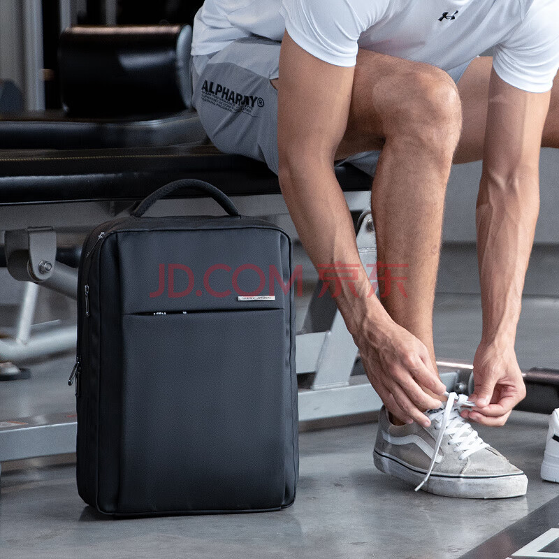 商品相册:马可·莱登双肩包男休闲背包多功能电脑包旅行学生书包MR2900精英黑标准款第