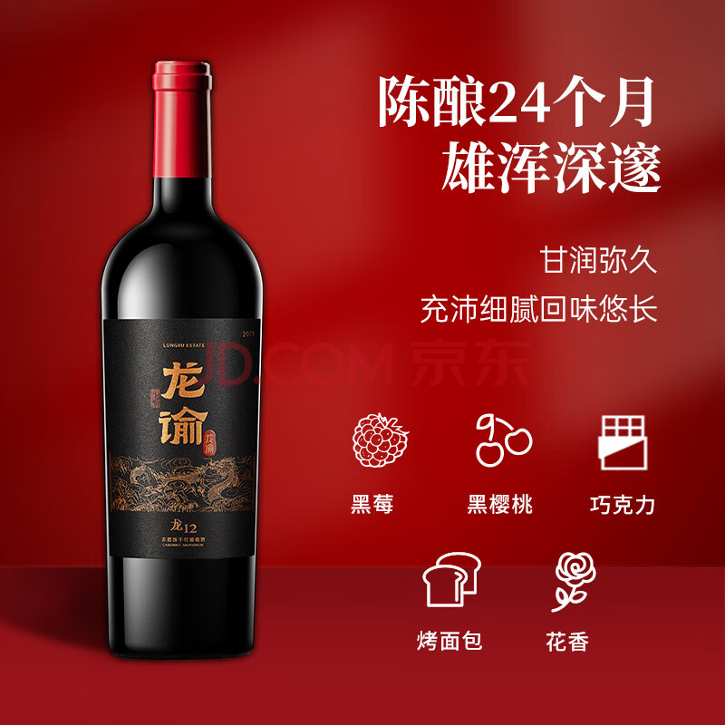商品相册:龙谕龙12 干红葡萄酒 750ml*4瓶 整箱装 赤霞珠 红酒礼盒 张裕集团第