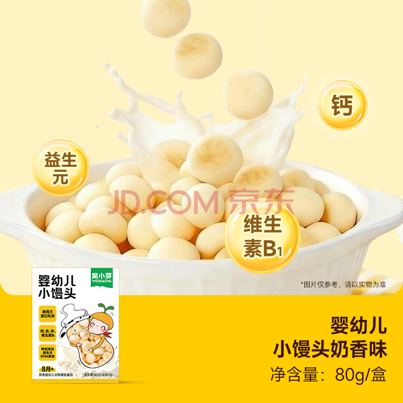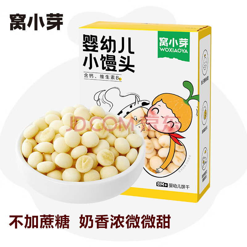 商品相册:窝小芽婴幼儿小馒头奶香味 宝宝零食 婴幼儿饼干奶豆无添加蔗糖80g 8M+第