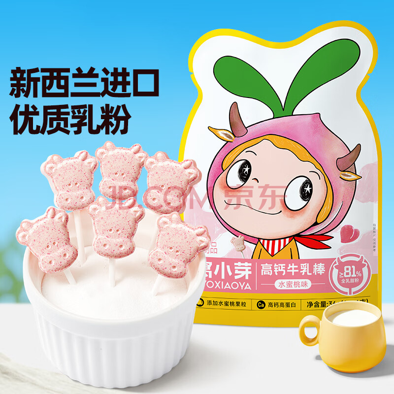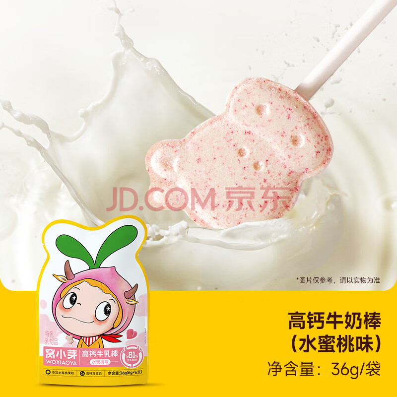 商品相册:窝小芽 儿童零食高钙牛乳奶棒36g水蜜桃味 营养棒棒糖不添加白糖防腐剂第