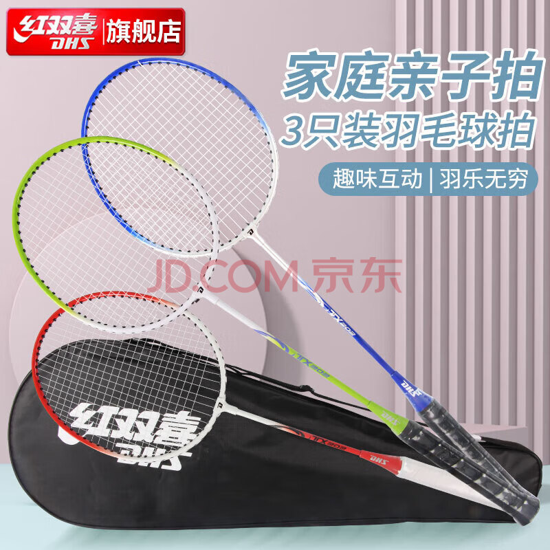 商品相册:红双喜(DHS)羽毛球拍3支装家庭型E-TX202已穿线第