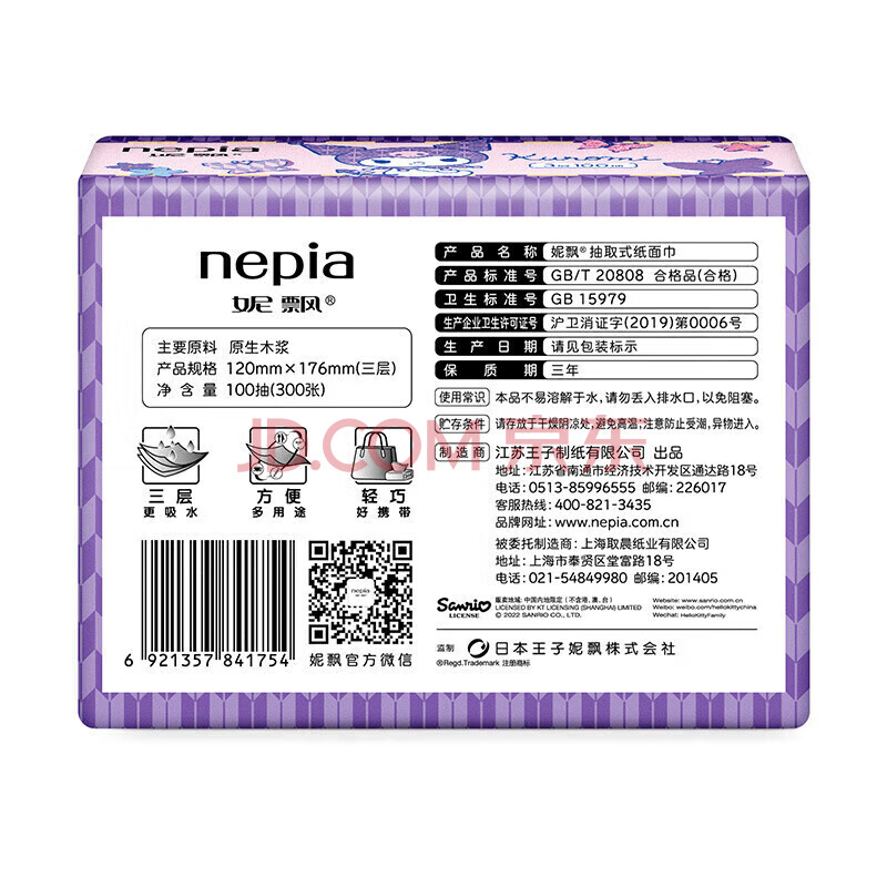 商品相册:妮飘(Nepia)库洛米抽纸3层100抽*20包儿童适用卫生纸巾面巾卡通抽取式餐巾纸第