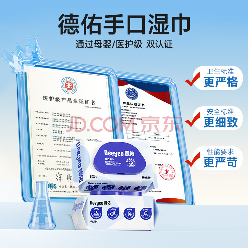 商品相册:德佑湿巾大包80抽*10包 EDI纯水洁肤湿纸巾手口湿巾纸【侯明昊推荐】第1张/共9