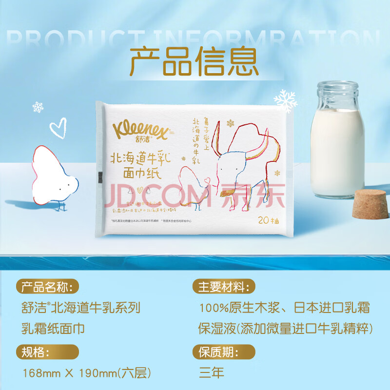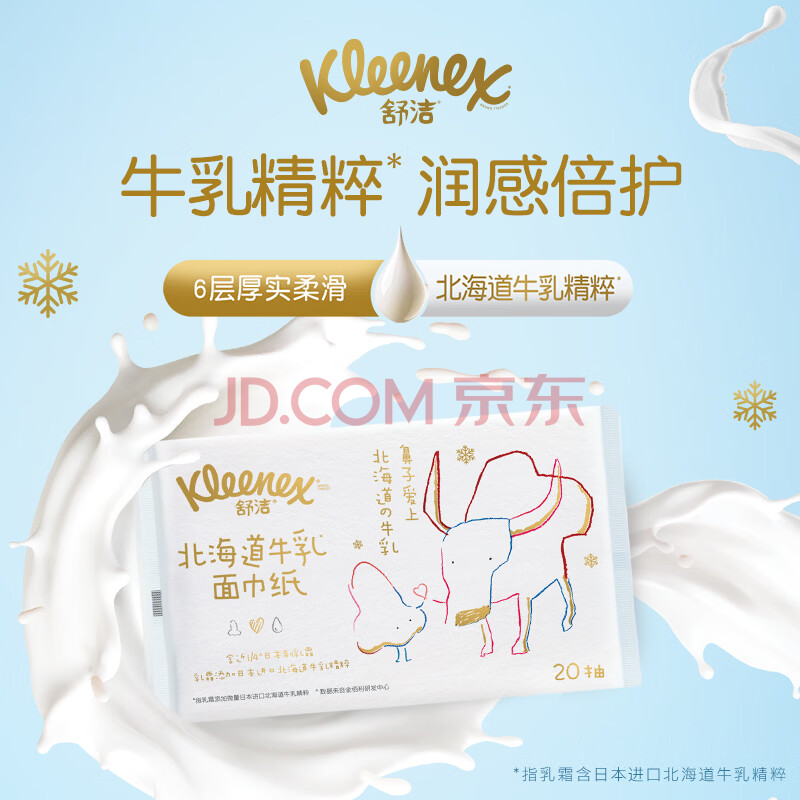 商品相册:舒洁(Kleenex)抽纸牛乳纸6层20抽*4包小包纸巾乳霜纸婴儿纸巾卫生纸云柔巾第