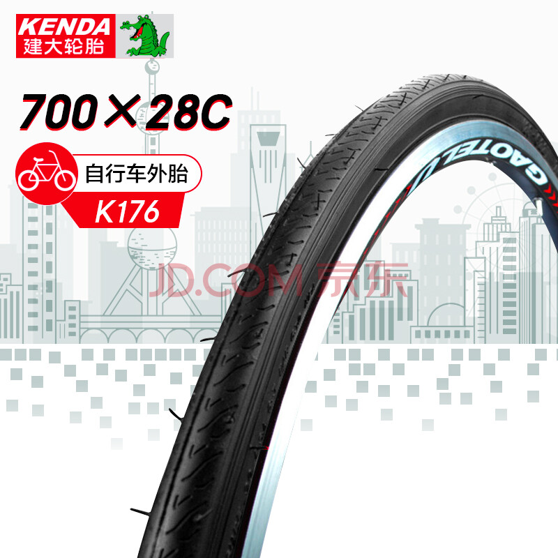 商品相册:KENDA 建大k193公路自行车外胎700X32c自行车光头轮胎低阻尼耐磨黑色第