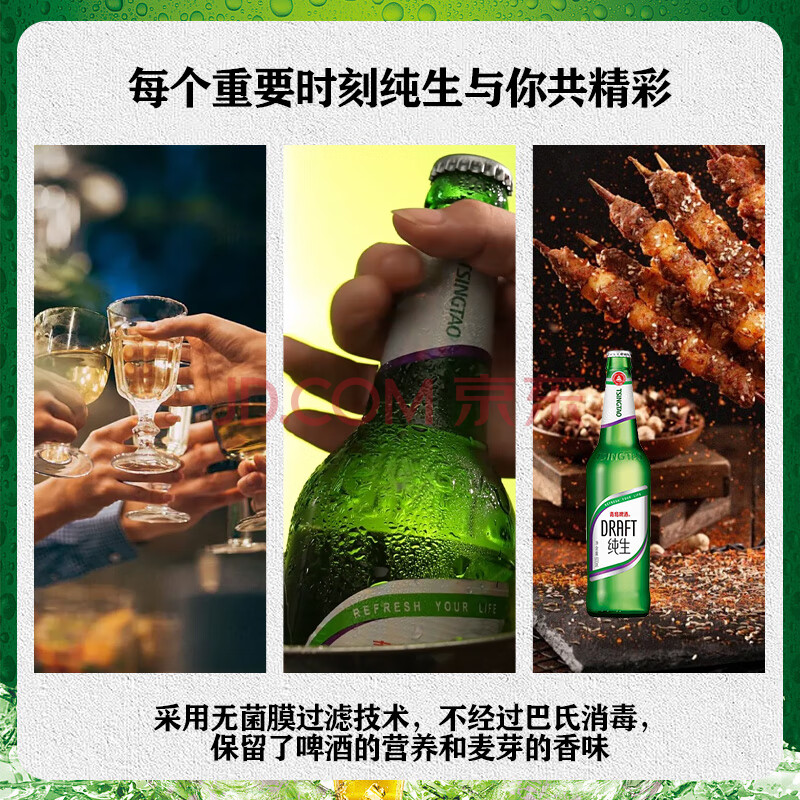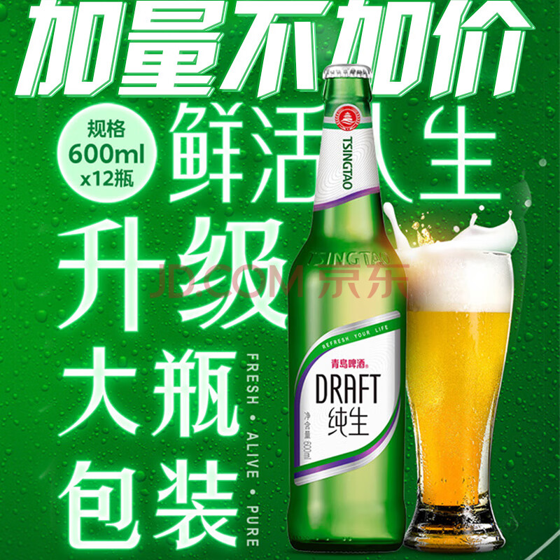商品相册:青岛啤酒(TsingTao)鲜活纯生原麦汁浓度8°P整箱装 600ml*12瓶 肖战同款踏春送礼第