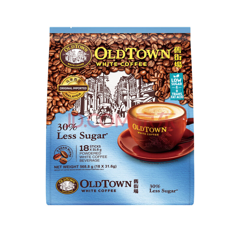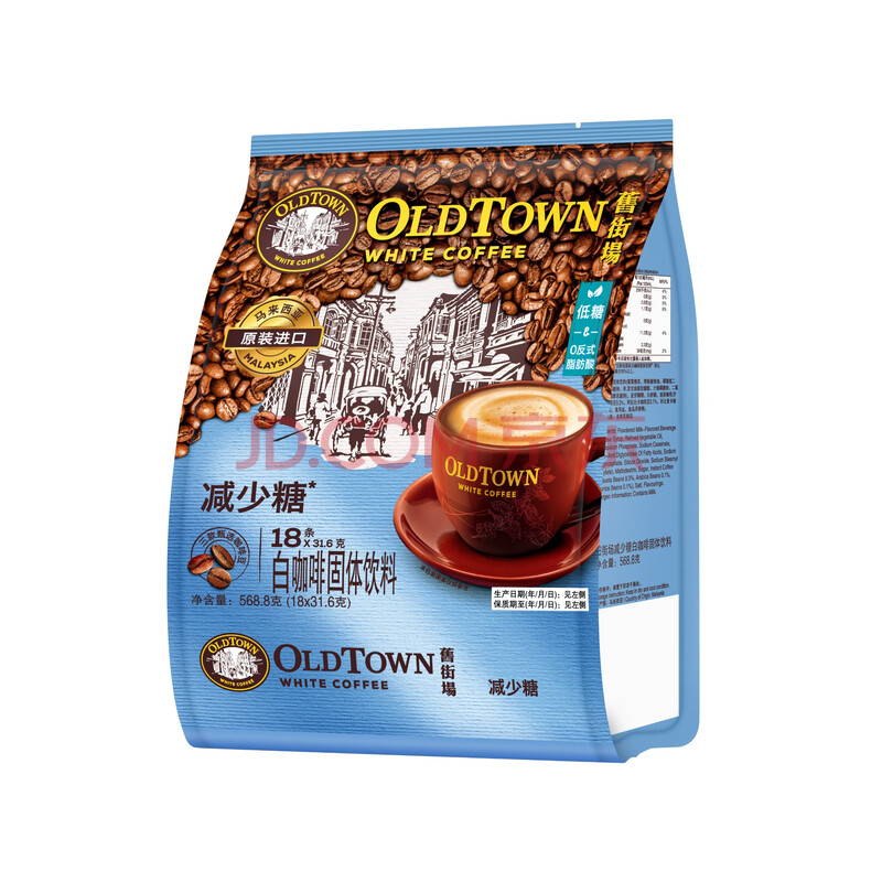 商品相册:旧街场(OLDTOWN)速溶原味白咖啡减少糖咖啡马来西亚进口三合一咖啡35g/31.6g*18条第