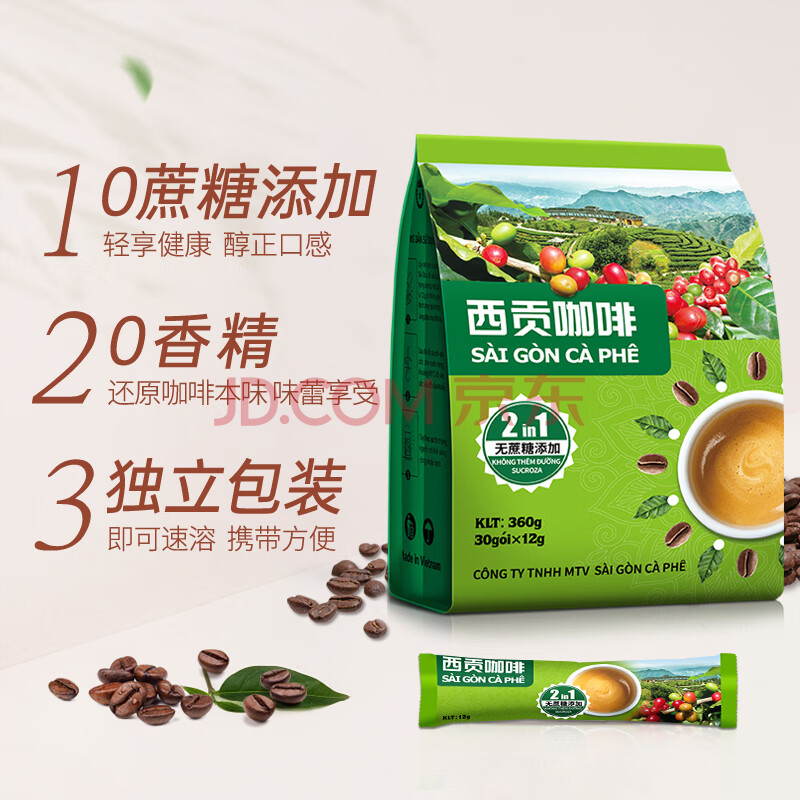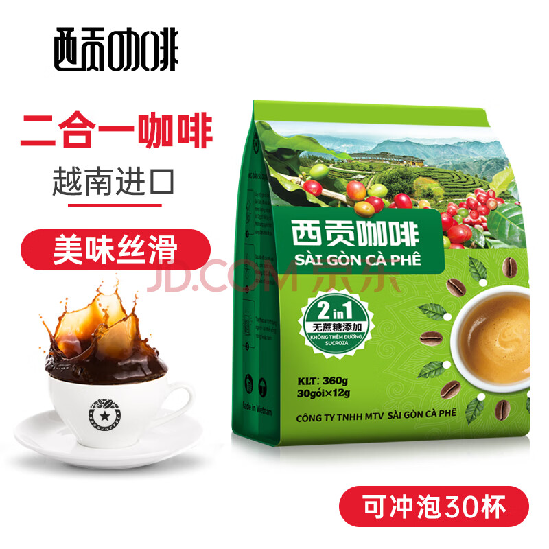 商品相册:西贡越南进口二合一无蔗糖速溶咖啡粉360g(12gx30条)第