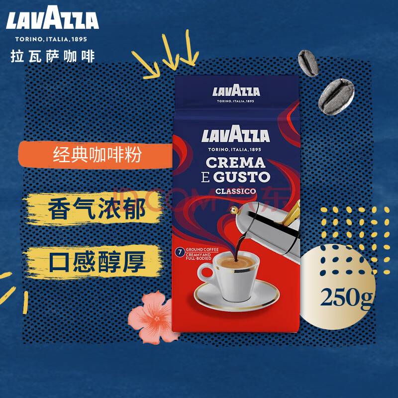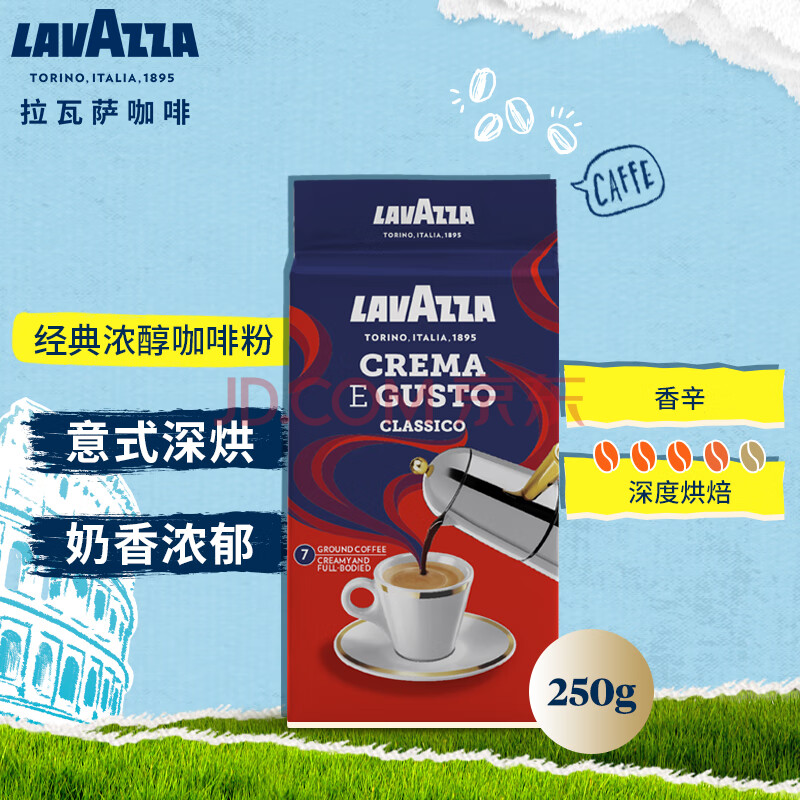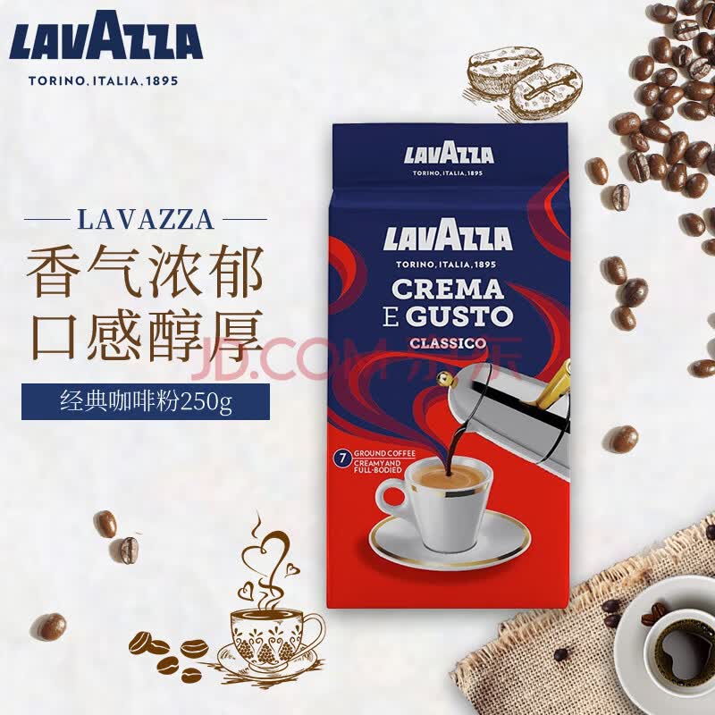商品相册:拉瓦萨(LAVAZZA)意大利进口经典浓醇现磨黑咖啡粉黑咖啡低脂 经典咖啡粉250g第