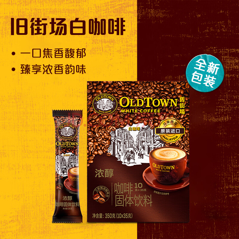 商品相册:旧街场(OLDTOWN)速溶原味白咖啡浓醇口味马来西亚进口三合一咖啡粉35g*10条深烘第