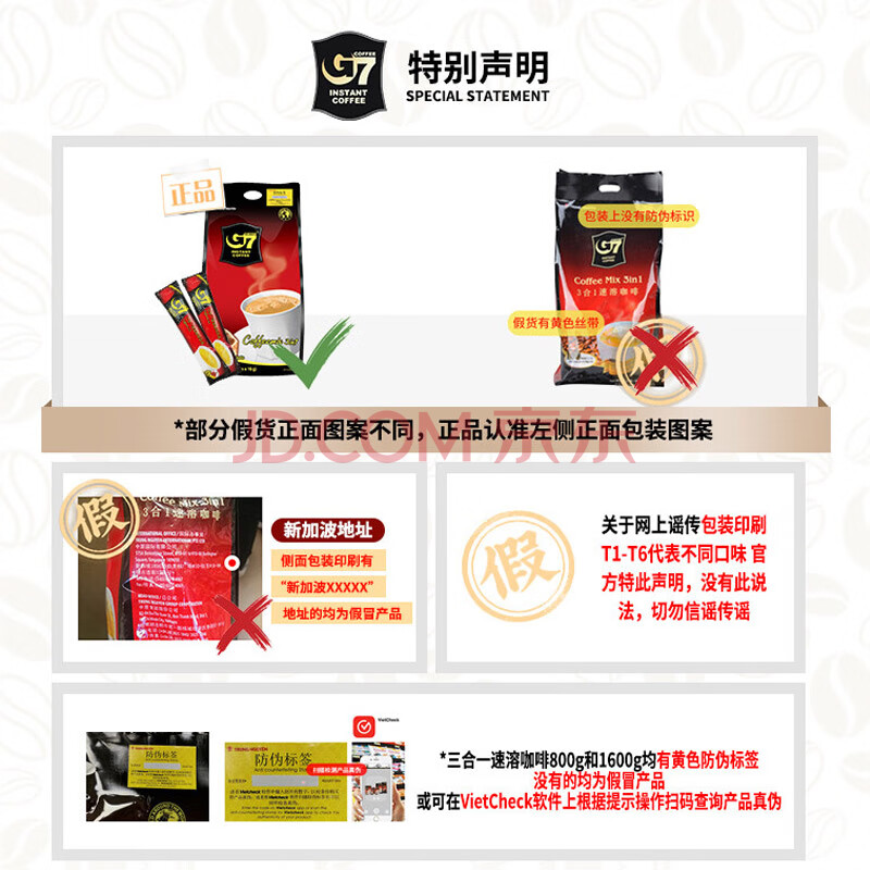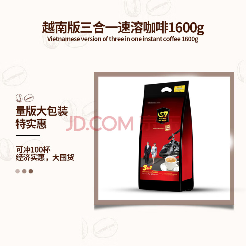 商品相册:中原G7三合一速溶咖啡1600g(16克*100条)越文版 越南进口第
