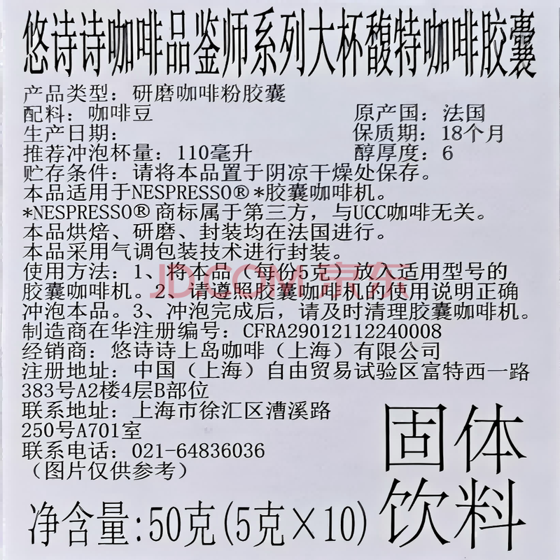 商品相册:悠诗诗(UCC)咖啡品鉴师系列胶囊咖啡06号 大杯馥特适配Nespresso机型 10粒装第