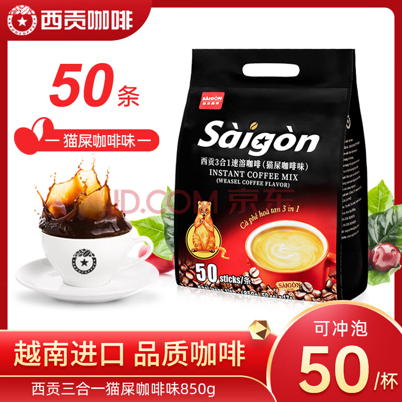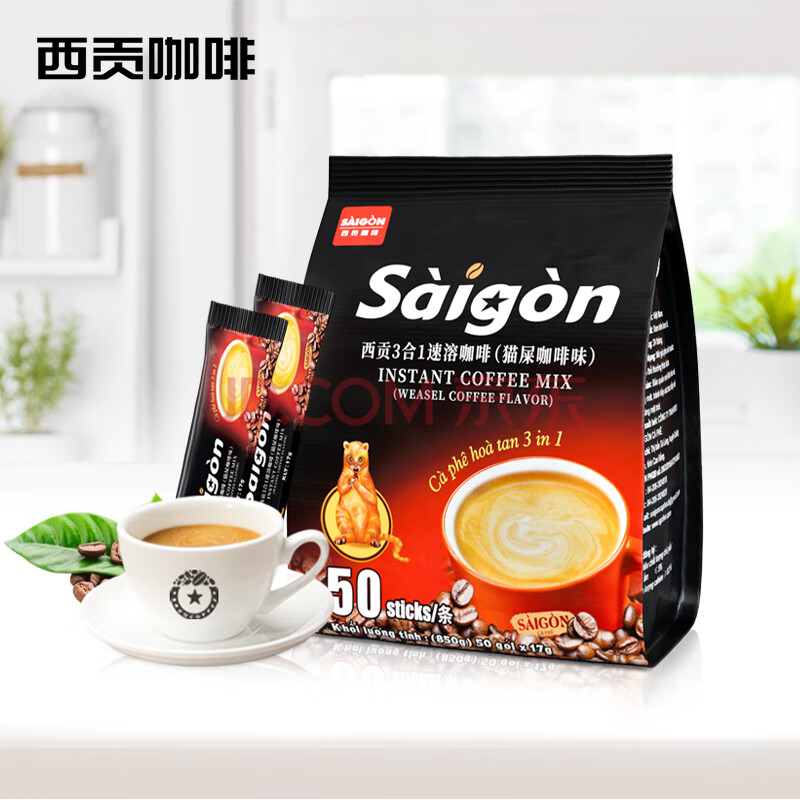 商品相册:西贡越南进口三合一猫屎咖啡味速溶咖啡850g(17gx50条)第
