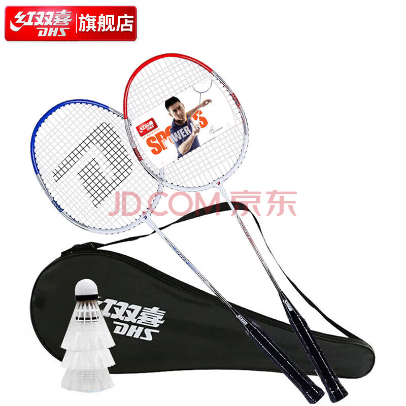 商品相册:红双喜 (DHS)羽毛球拍对拍入门铝合金羽拍1500含羽毛球第