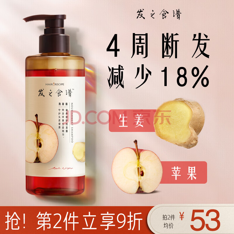 商品相册:髮の食谱发之食谱苹果生姜洗发水280g洗头膏去屑洗发水男士女士强韧防断第