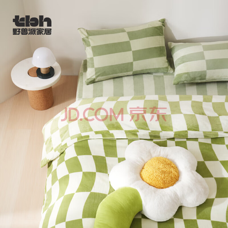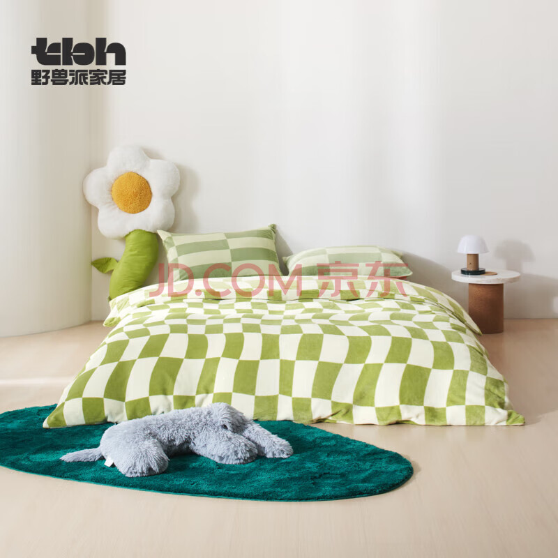 商品相册:野兽派家居(tbh)床上棋盘格法兰绒床笠四件套亲肤套件1.8米床送人礼物第