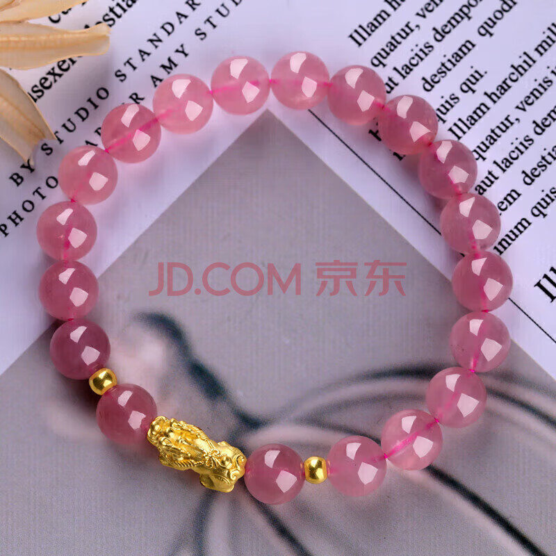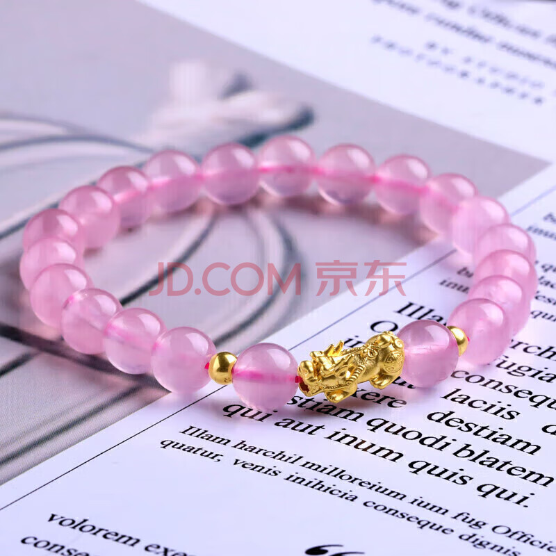商品相册:石玥珠宝收藏级8mm天然马粉水晶手链黄金足金貔貅转运珠手串男女士款礼物第