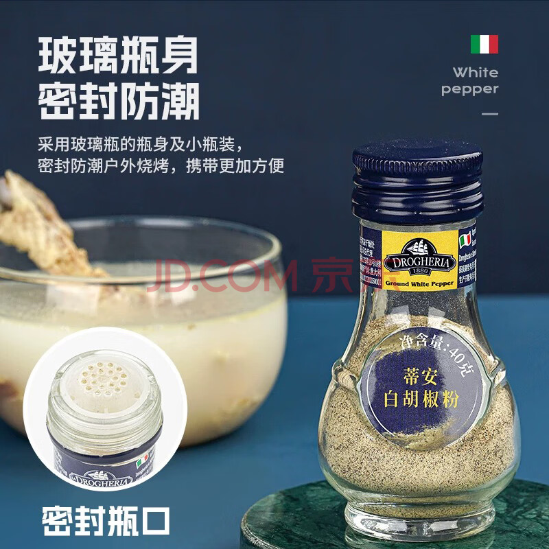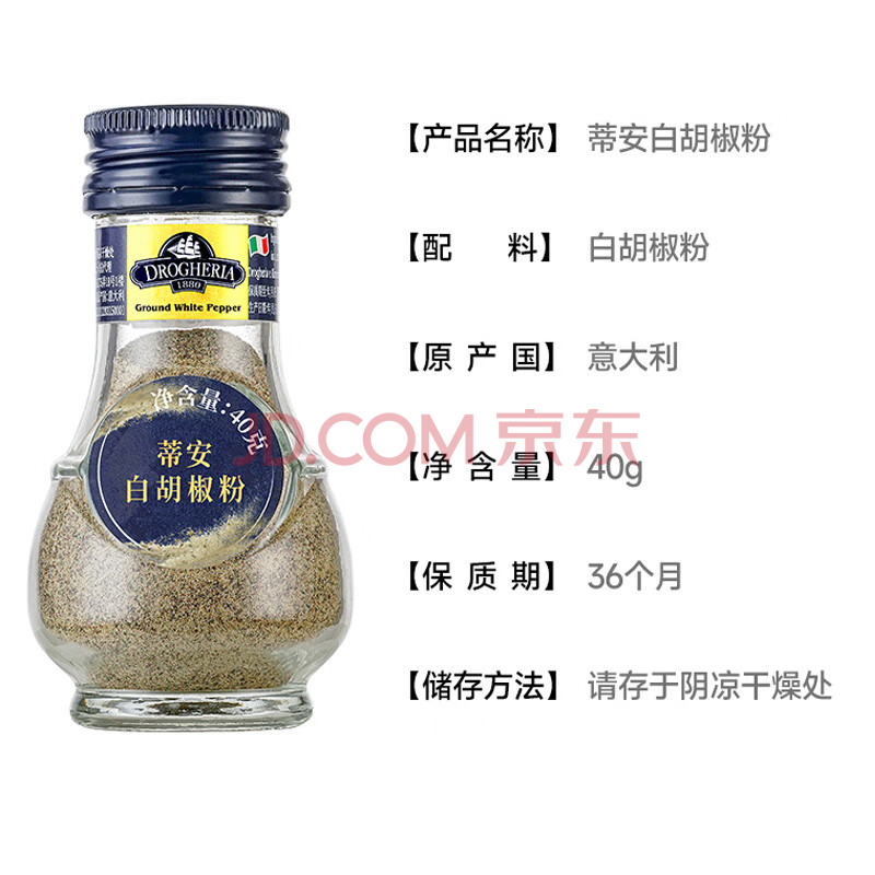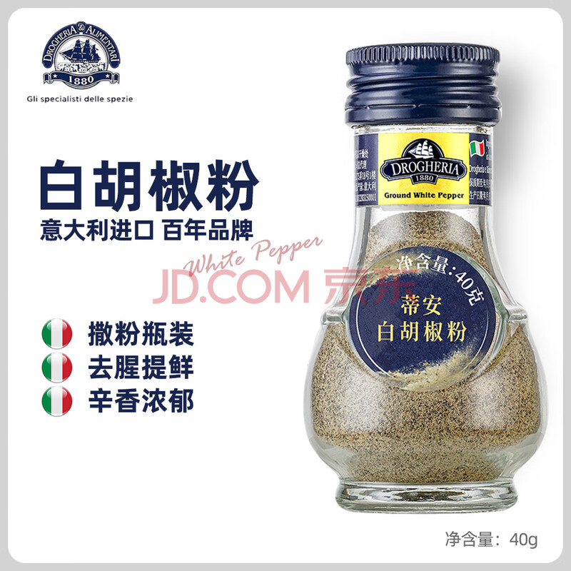 商品相册:蒂安D&A 意大利进口 白胡椒粉40g/瓶 新旧包装随机发货 西式调味料第