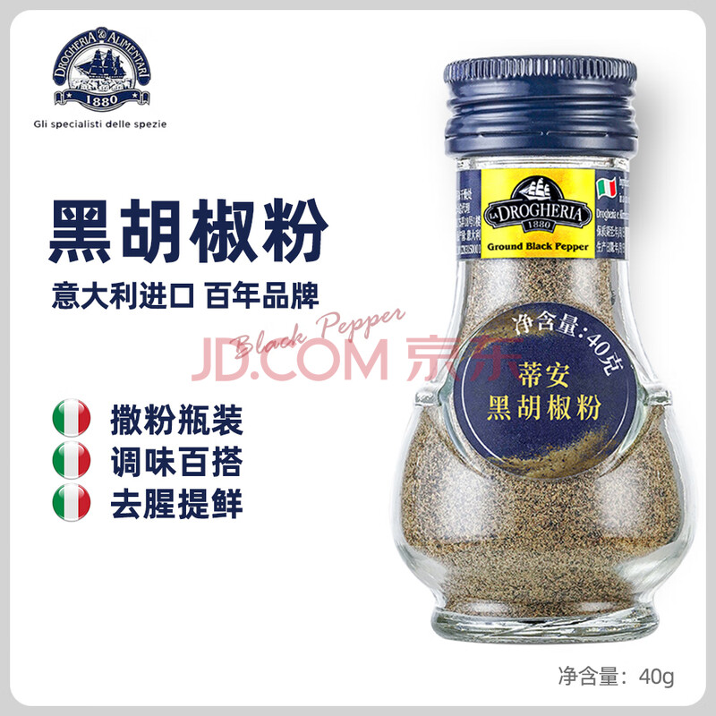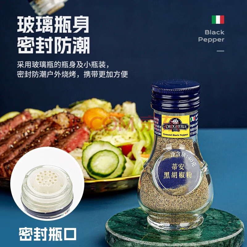 商品相册:蒂安D&A 意大利进口 黑胡椒粉40g/瓶 西餐牛排意面调味料第
