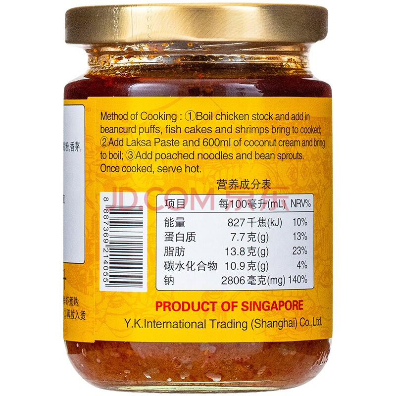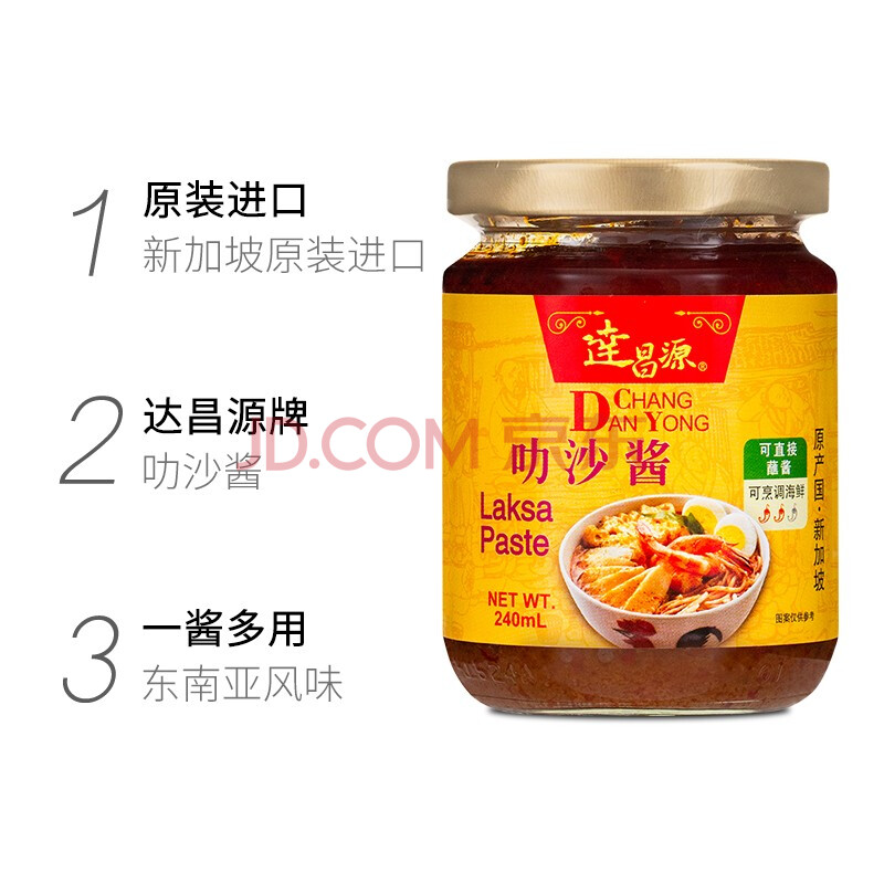 商品相册:久意达昌源新加坡进口 叻沙酱炒饭炒面酱 辣虾酱冬阴功汤酱240ml第