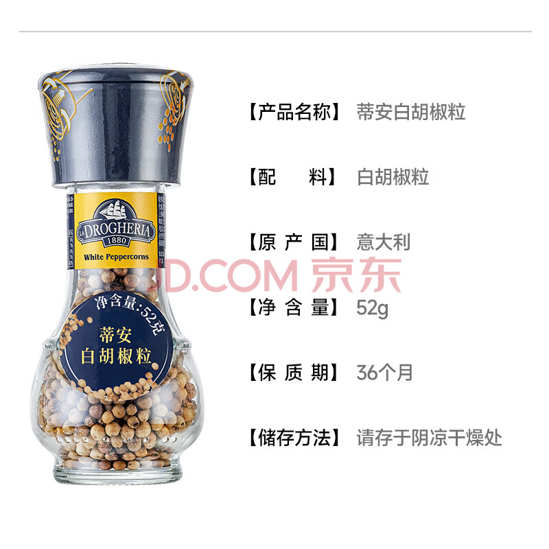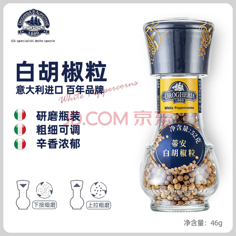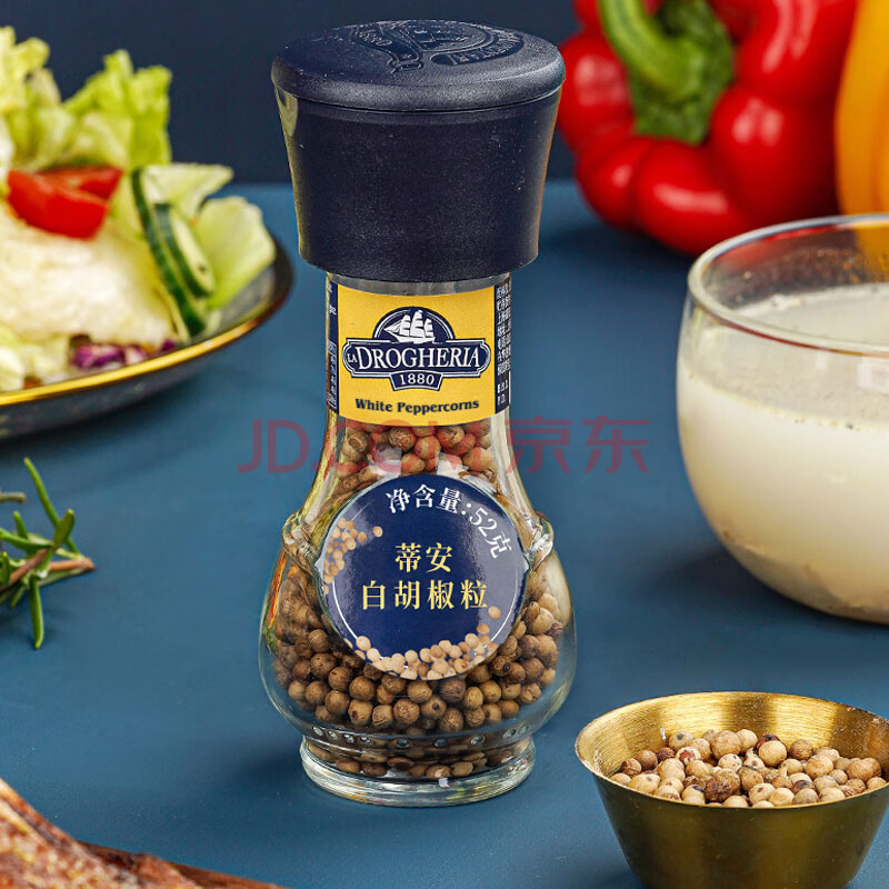 商品相册:蒂安D&A 白胡椒粒 研磨瓶52g/瓶 意大利进口 西餐牛排意面烧烤调味料第