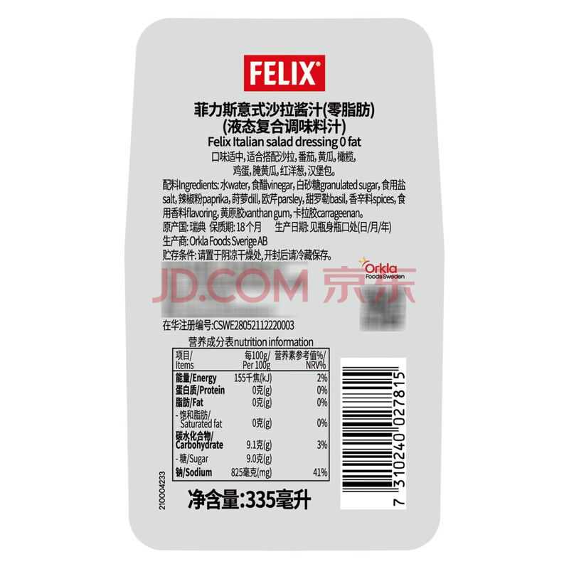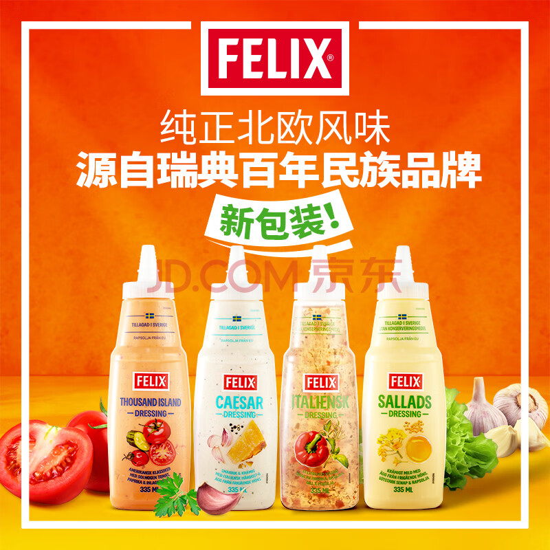 商品相册:菲力斯瑞典进口 0脂肪沙拉汁335ml挤压瓶 酸甜沙拉酱水果蔬菜沙拉酱调味第