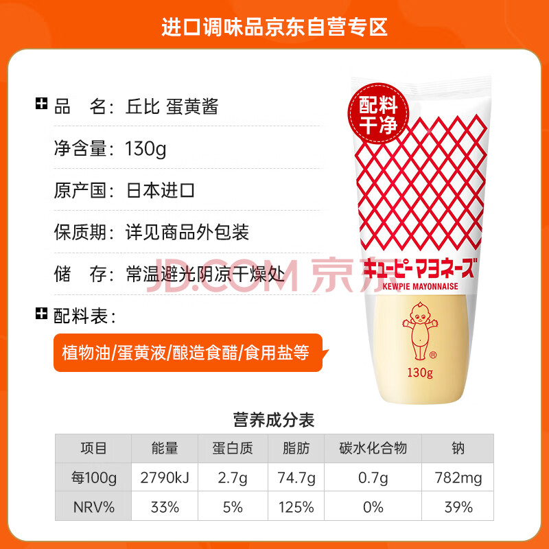 商品相册:丘比蛋黄酱 日本进口 挤压瓶美乃滋 蔬菜水果沙拉酱寿司色拉酱130g第