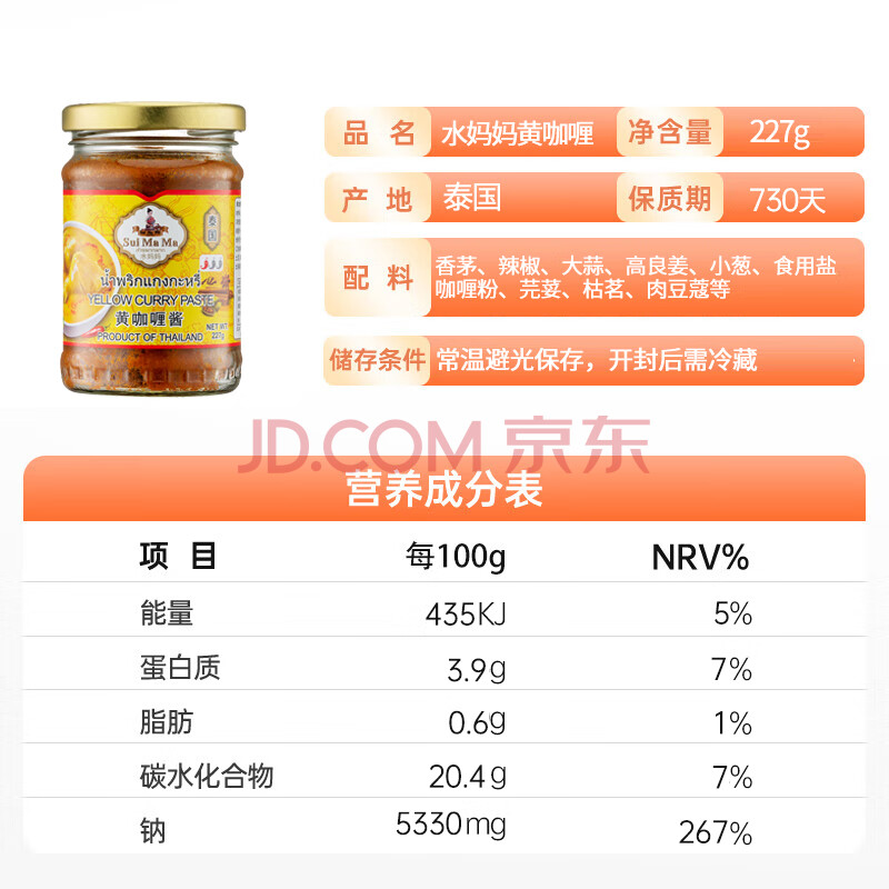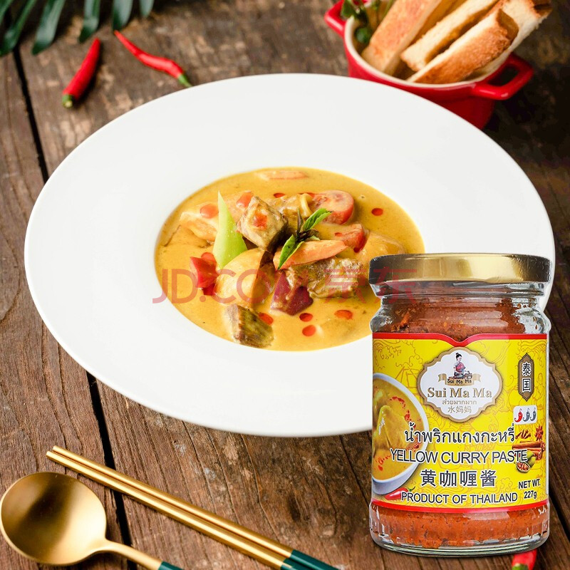 商品相册:水妈妈泰国原装进口 黄咖喱酱 泰国咖喱膏咖喱鸡 牛肉咖喱饭咖喱面 227g第
