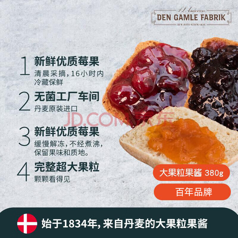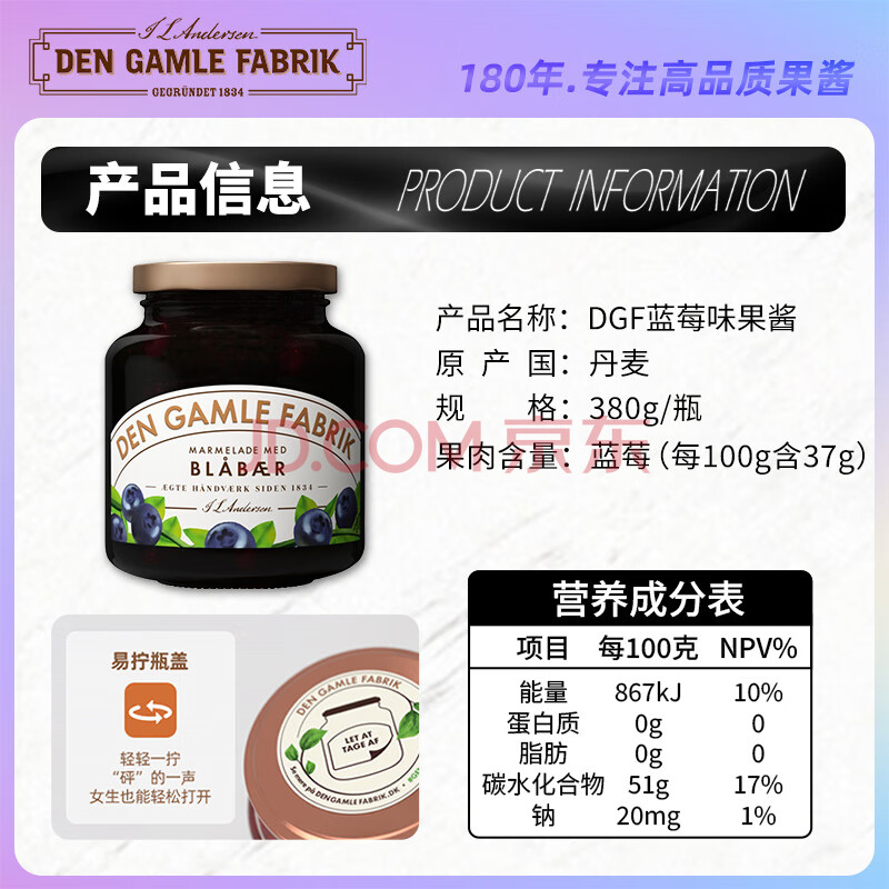 商品相册:DEN GAMLE FABRIK(DGF)丹麦进口 蓝莓果肉果酱380g面包搭档早餐伴侣0脂肪第