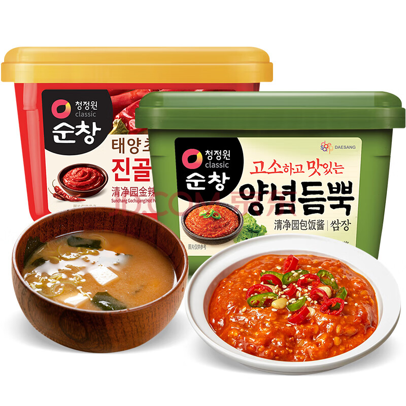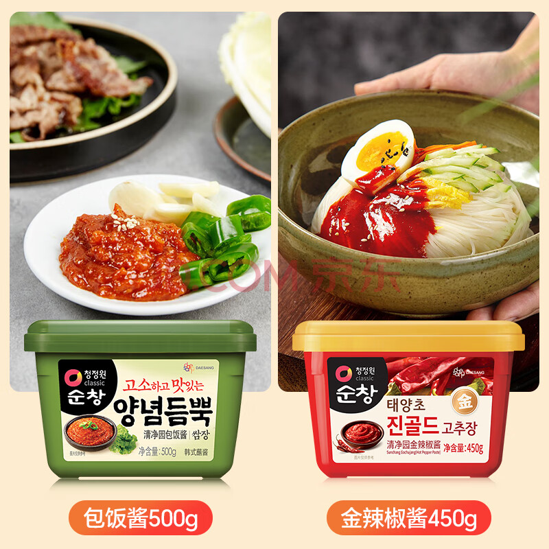 商品相册:清净园 韩国进口 金辣椒酱450g+包饭酱500g 部队火锅石锅拌饭酱烤肉酱第