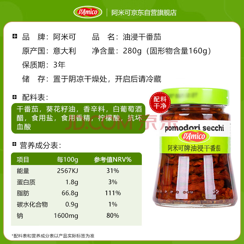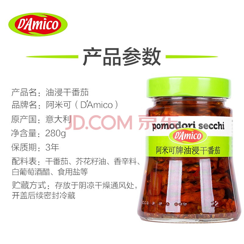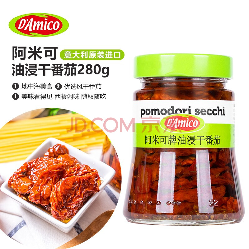 商品相册:阿米可意大利进口油浸干番茄280g 即食沙拉意面披萨面包西餐配菜第