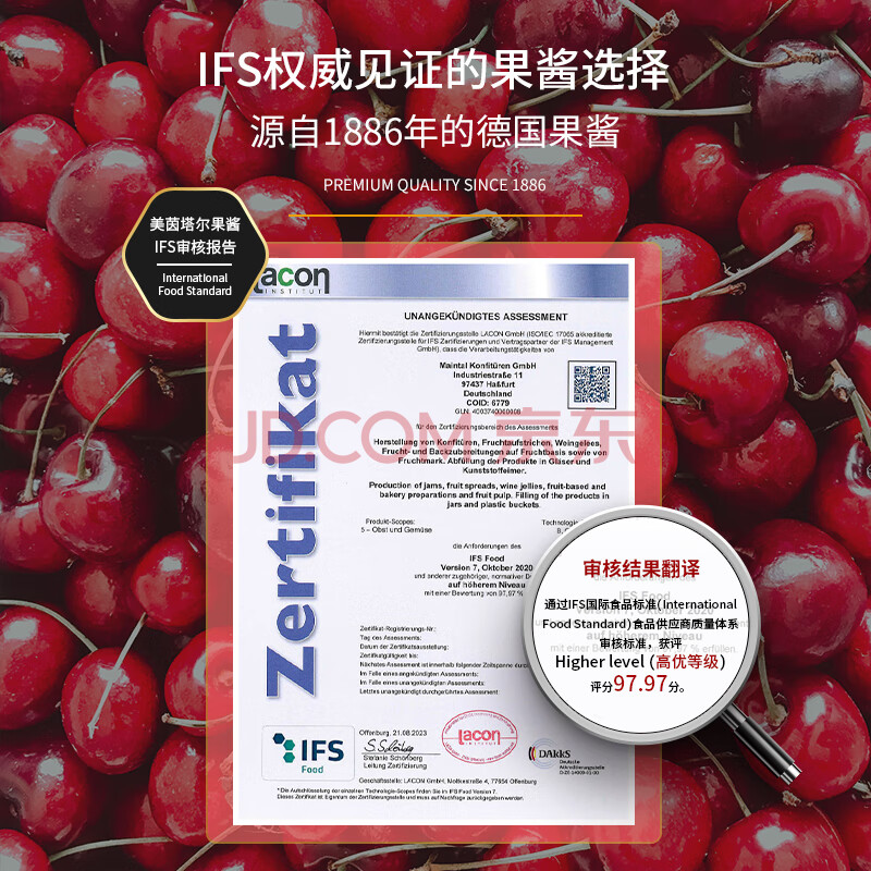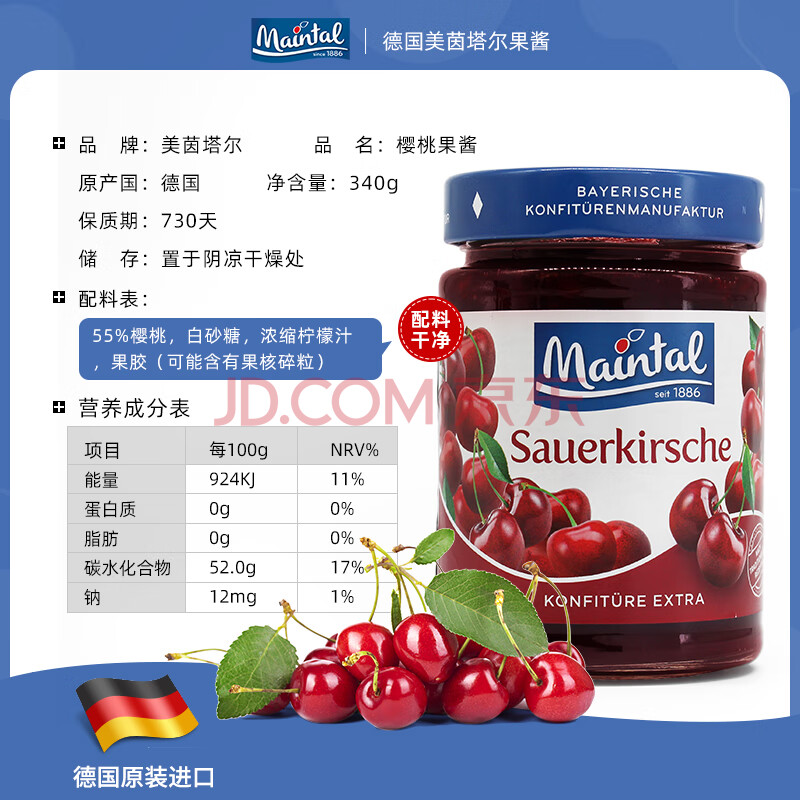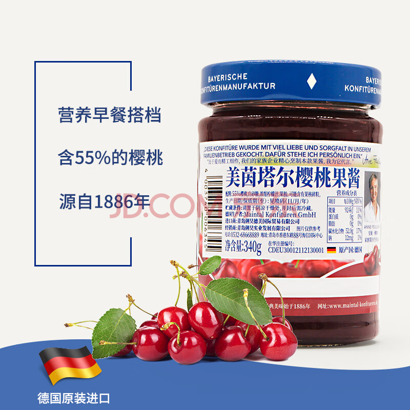 商品相册:美茵塔尔德国进口无添加樱桃酱340g早餐伴侣0脂肪第