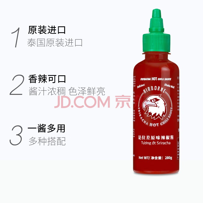 商品相册:红飞鹰 泰国进口 低脂sriracha是拉差辣椒酱 拌面炒年糕酱火锅蘸酱280g第