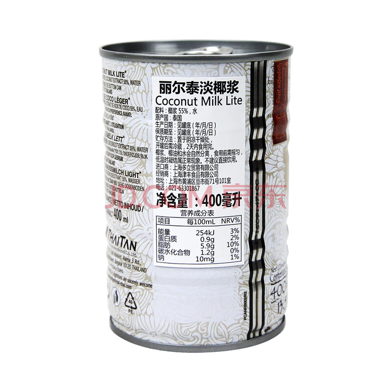 商品相册:丽尔泰 淡椰浆400ml/罐 泰国风味 搭配各式咖喱烘焙甜品西米露 泰国进口第