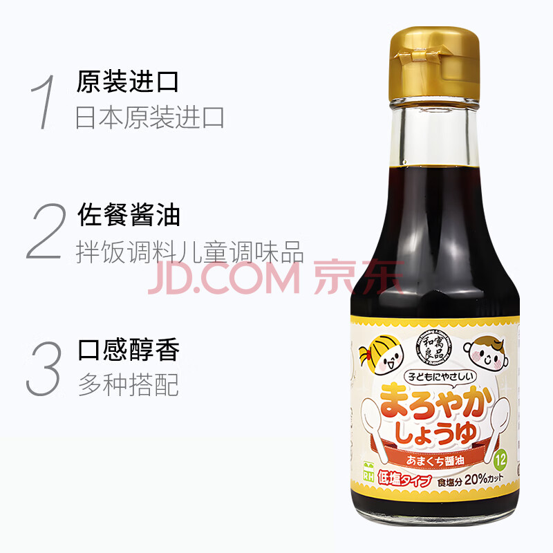 商品相册:和寓良品儿童酱油150ml【减盐20%】日本进口生抽调味汁佐餐拌饭第